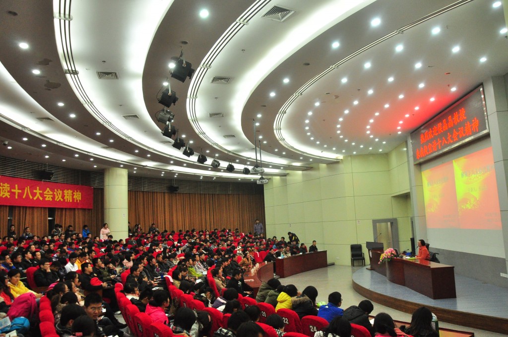 我校学生在认真听取报告会后,纷纷表示宣讲会提高了自身的政治与思想觉悟,更好地帮助自己思考十八大和自身的关系,明白了践行十八大精神离大学生不远,努力学习,做好身边的每一件事就是践行十八大精神的具体表现。