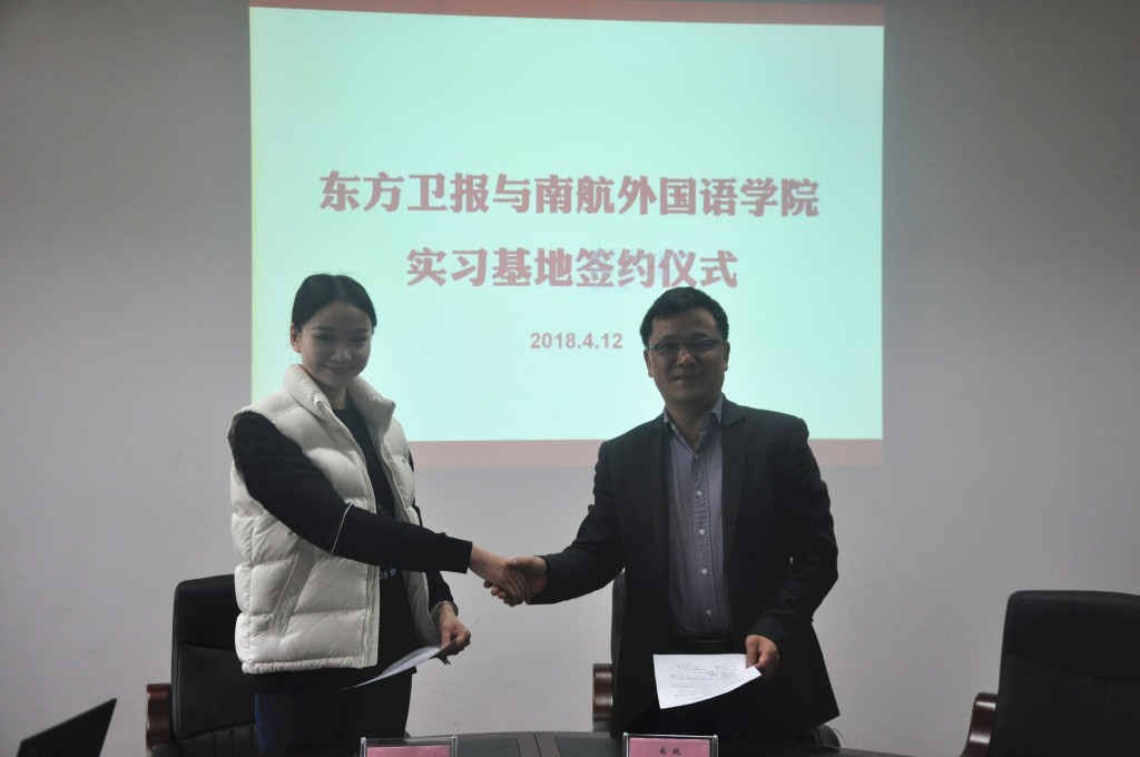 4月12日上午,中央电视台希望之星英语风采大赛江苏组委会、东方卫报地铁文创中心与南航365上市公司实习实践基地签约仪式在365上市公司327会议室举行。