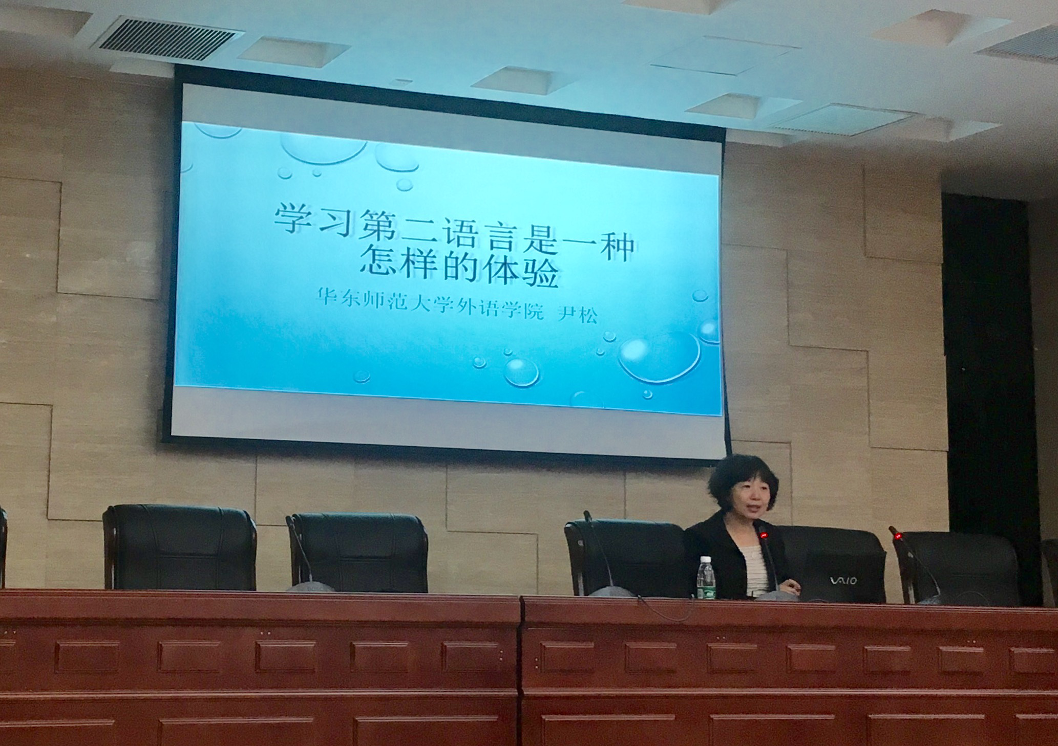 尹松老师以第二语言学习与教学的八个方面作为切入点,配以生动形象的谚语,并利用日语教学与学习的实例加以佐证,从第二语言学习的常识性问题、年龄对第二语言习得影响以及第二语言习得的个性差异等多个方面为大家进行了深入浅出的讲解。