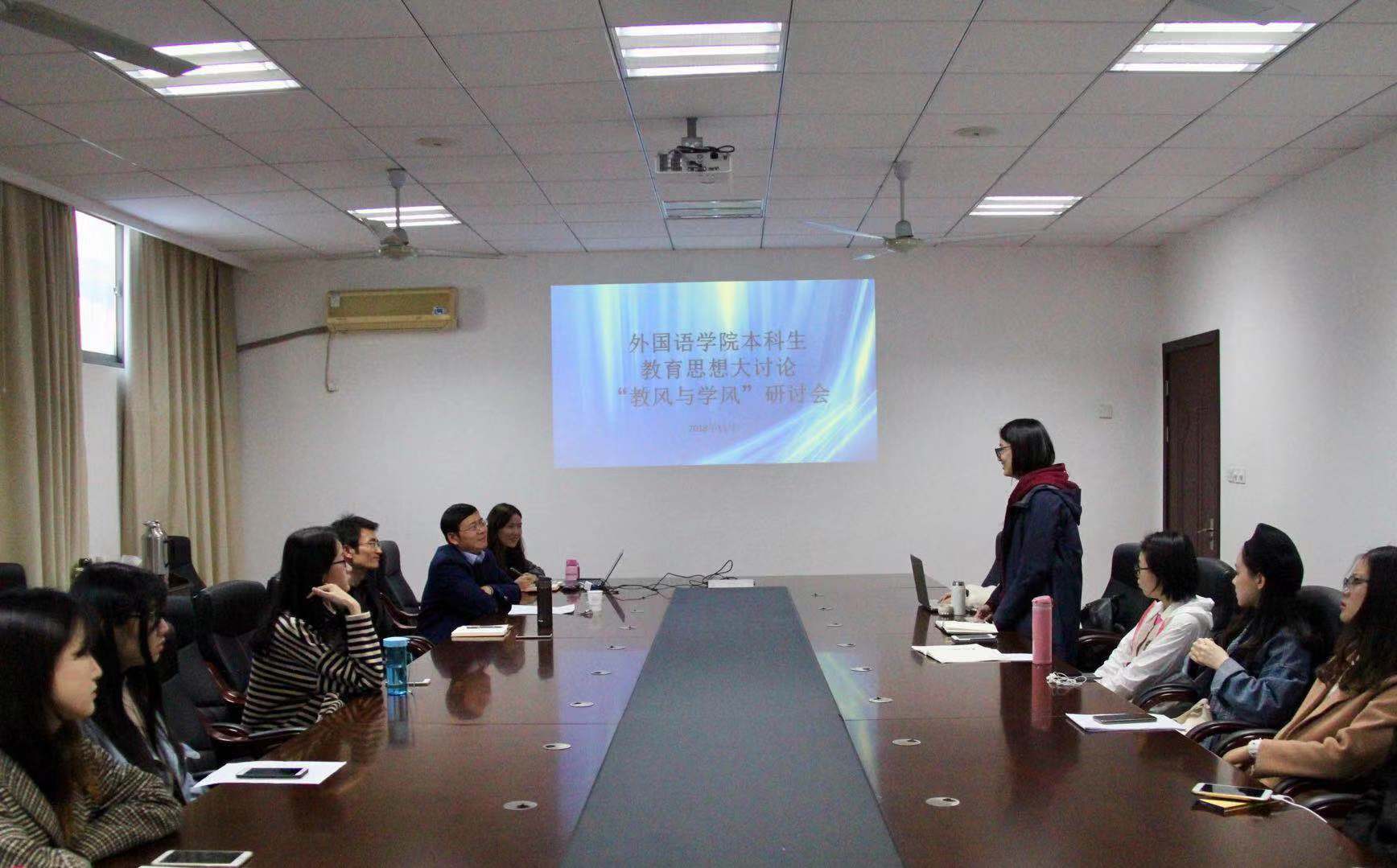 11月9日下午,365上市公司本科生各年级开展了2场教风与学风专题研讨会,英语系主任姜礼福老师、白雪花老师,日语系钟勇老师,各年级辅导员,各班班长、学习委员及学生代表参加了本次研讨会,就如何更好助力我院学风教风建设发展进行了深入的交流和讨论。