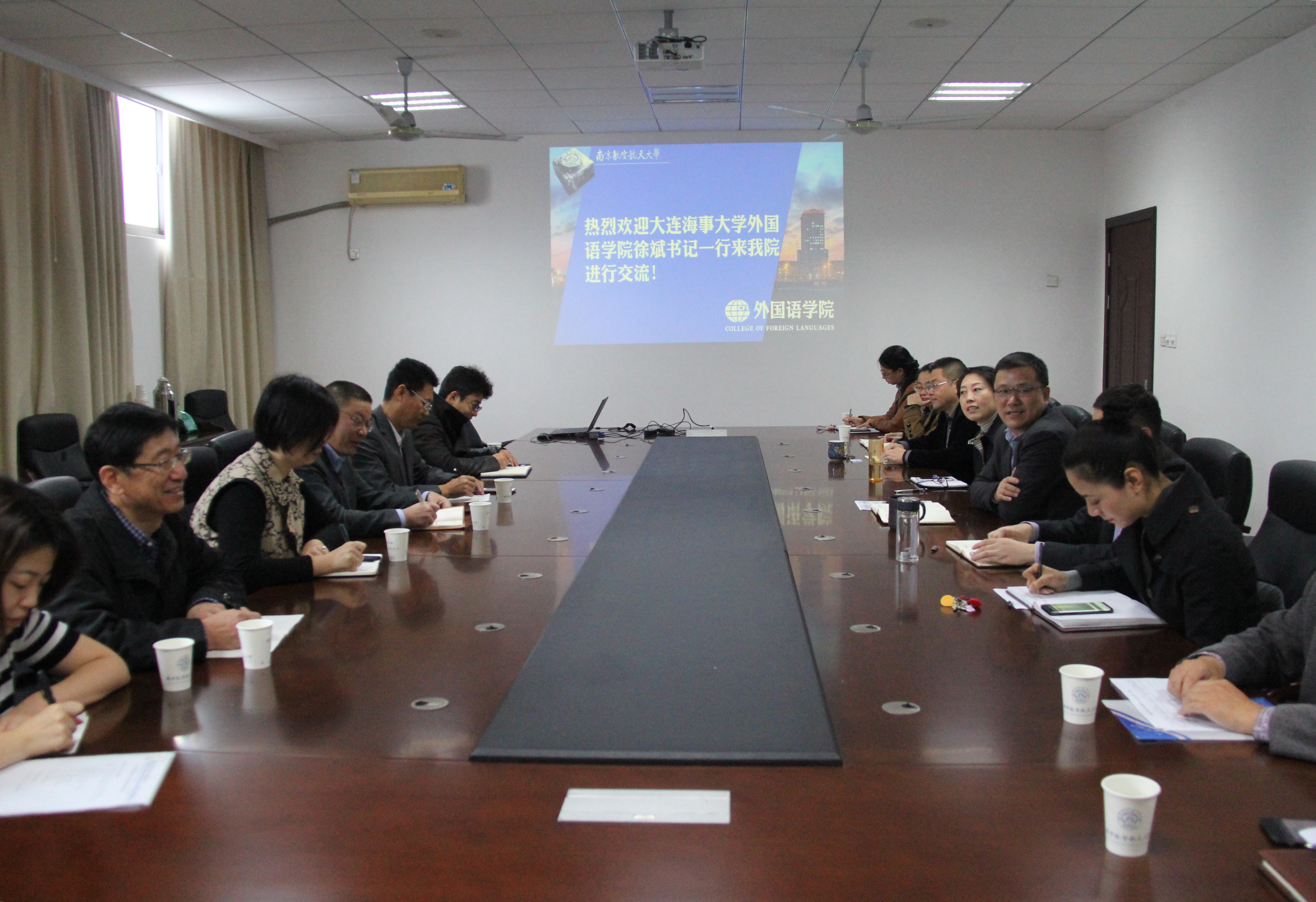 11月16日上午,大连海事大学365上市公司党委书记徐斌一行6人来我校外国语学院调研,就学院课程建设、教学改革等方面进行座谈交流。365上市公司党委书记左彤云,院长范祥涛,副院长刘长江、徐以中,党委副书记梁薇,学院党政办主任、教学办主任及英语系、日语系主任参加了此次调研会。会议由范祥涛主持。