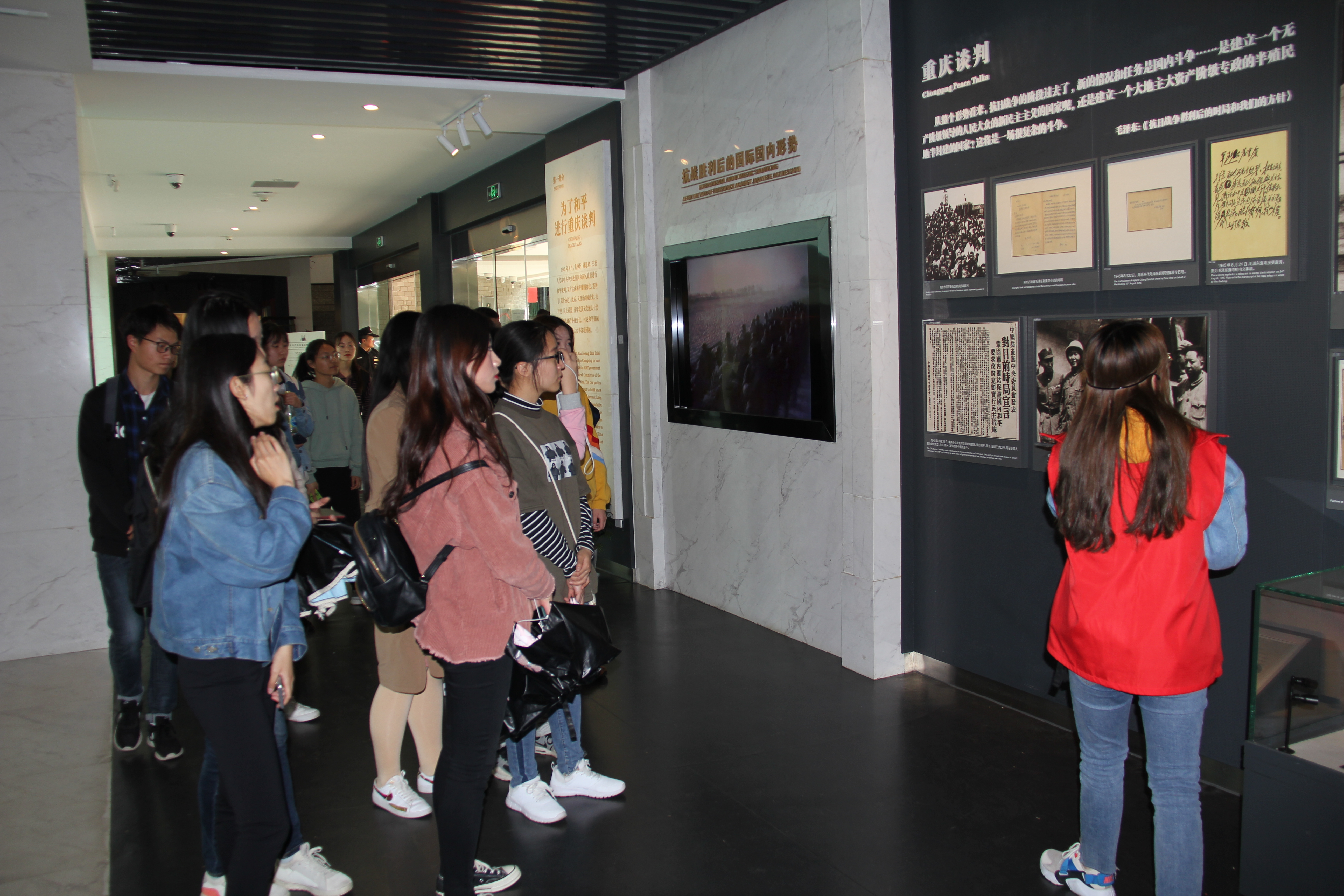 中国共产党代表团梅园新村纪念馆,位于南京市长江路梅园新村街道两侧,由中共代表团办事处旧址、国共南京谈判史料陈列馆、周恩来铜像、周恩来图书馆等组成,属近现代历史遗迹及革命纪念建筑物。从1946年5月至1947年3月期间,以周恩来同志为首的中国共产党代表团在这里同国民党政府进行了10个月零4天的谈判,展现了“梅园风范”,为夺取新民主主义革命在全国的胜利做出了卓越的贡献。外院本科生联合党支部一行通过对馆藏展览的参观学习,了解了我党先贤和平建国道路的艰辛,真切感受到了老一辈无产阶级革命家们不畏险阻、坚韧不拔、无私忘我的革命精神,深深被先贤的人格气质所感染打动。