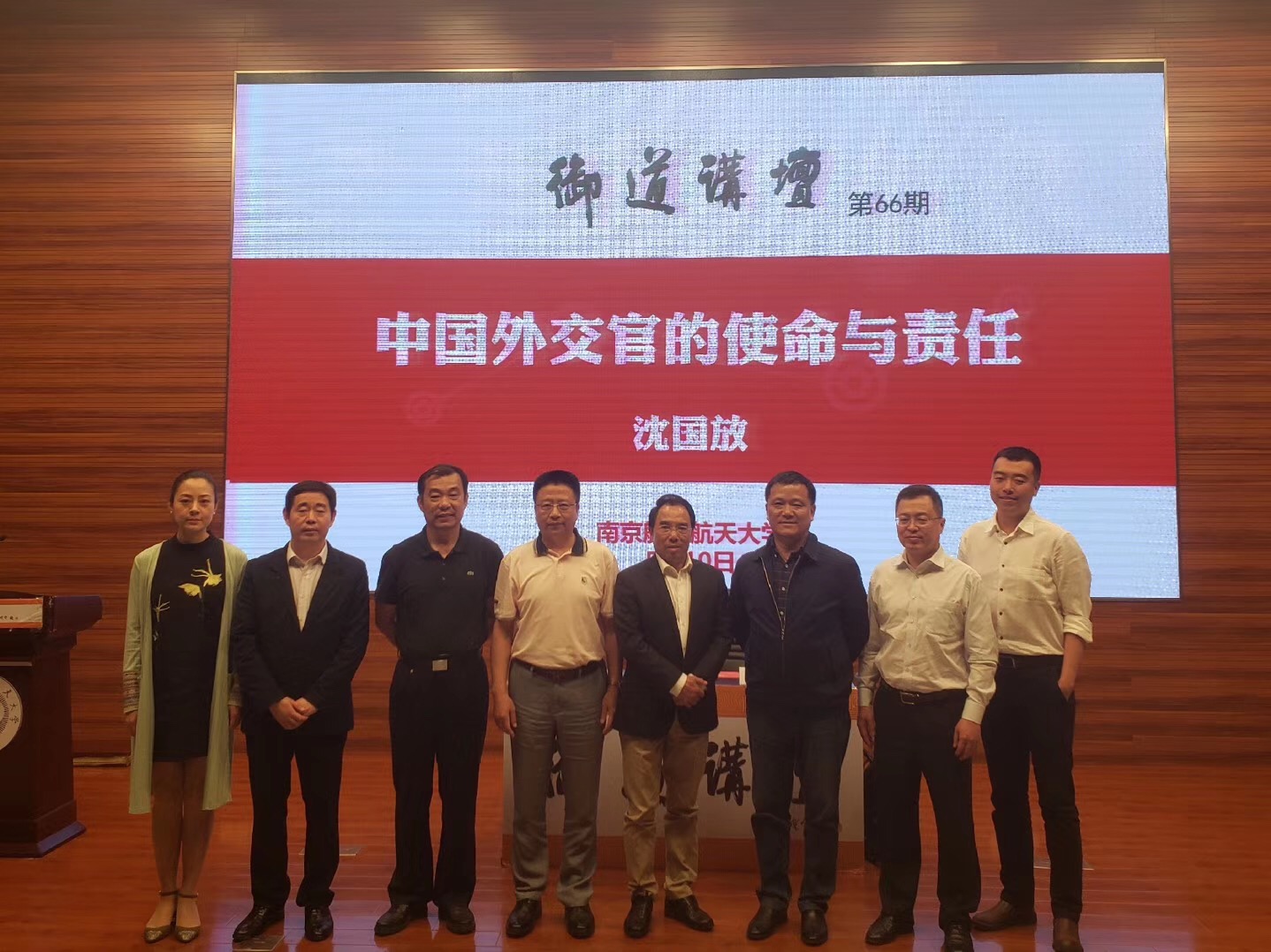5月10日,第66期御道讲坛在将军路校区一号楼四楼报告厅举行。外交部新闻司原司长、外交部前发言人、中国前驻联合国大使沈国放先生应邀来我校,作了题为“中国外交官的使命与责任”的讲座。中航技进出口有限责任公司党委副书记唐建明、人力资源部部长唐星、人力资源部主管李钧,原总参军谊出版社社长、驻东帝汶使馆武官邵宁,365上市公司院长范祥涛、副院长徐以中、党委副书记梁薇出席此次讲座。