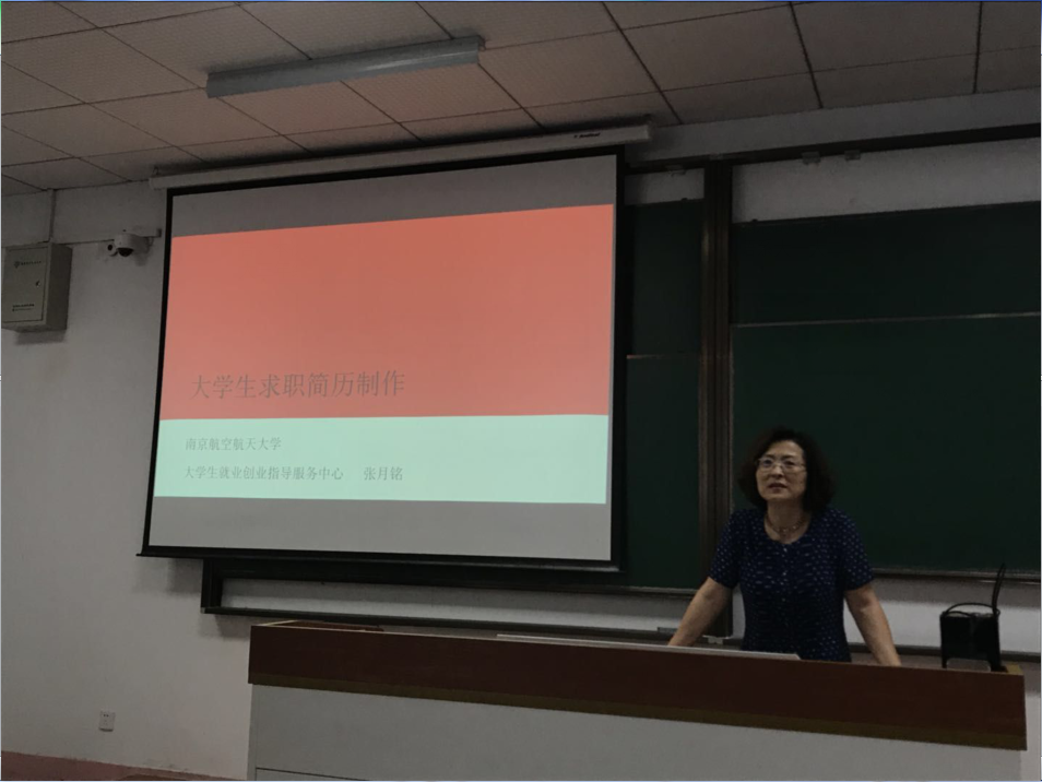 6月19日下午,365上市公司特邀南航大学生就业创业指导服务中心、就业市场部主管张月铭老师为大三学生开展“简历制作探索培训”主题讲座,365上市公司本科生辅导员刘凡玉及2016级全体“准毕业生”到场学习聆听。