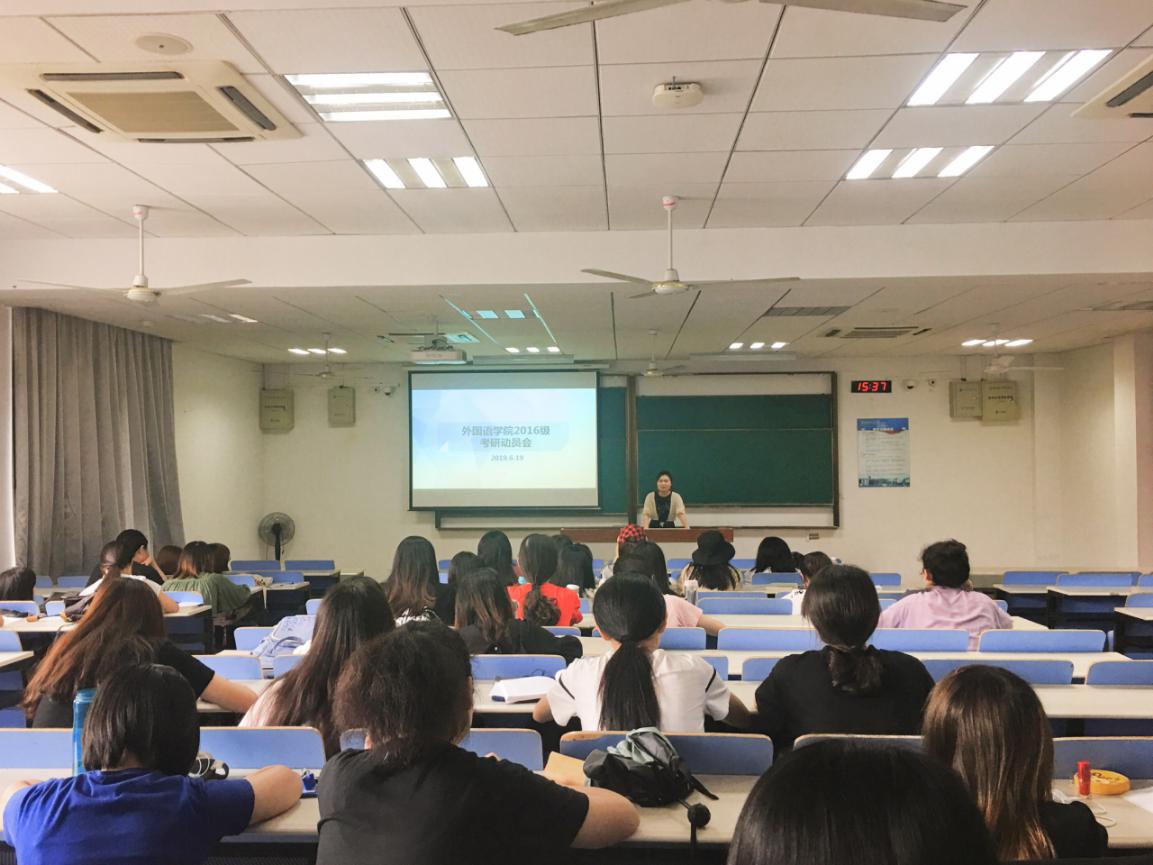 大会由辅导员刘凡玉主持。在开始的升学出国动员环节,徐以中以漫画和照片的形式生动地简述了自己的硕博生涯,并指出人的一生要积极主动提出问题,要做对社会有益的事;之后他介绍了学院研究生培养政策以及学院近年来学术科研成就,希望有升学意向的同学慎重择校,努力拼搏。