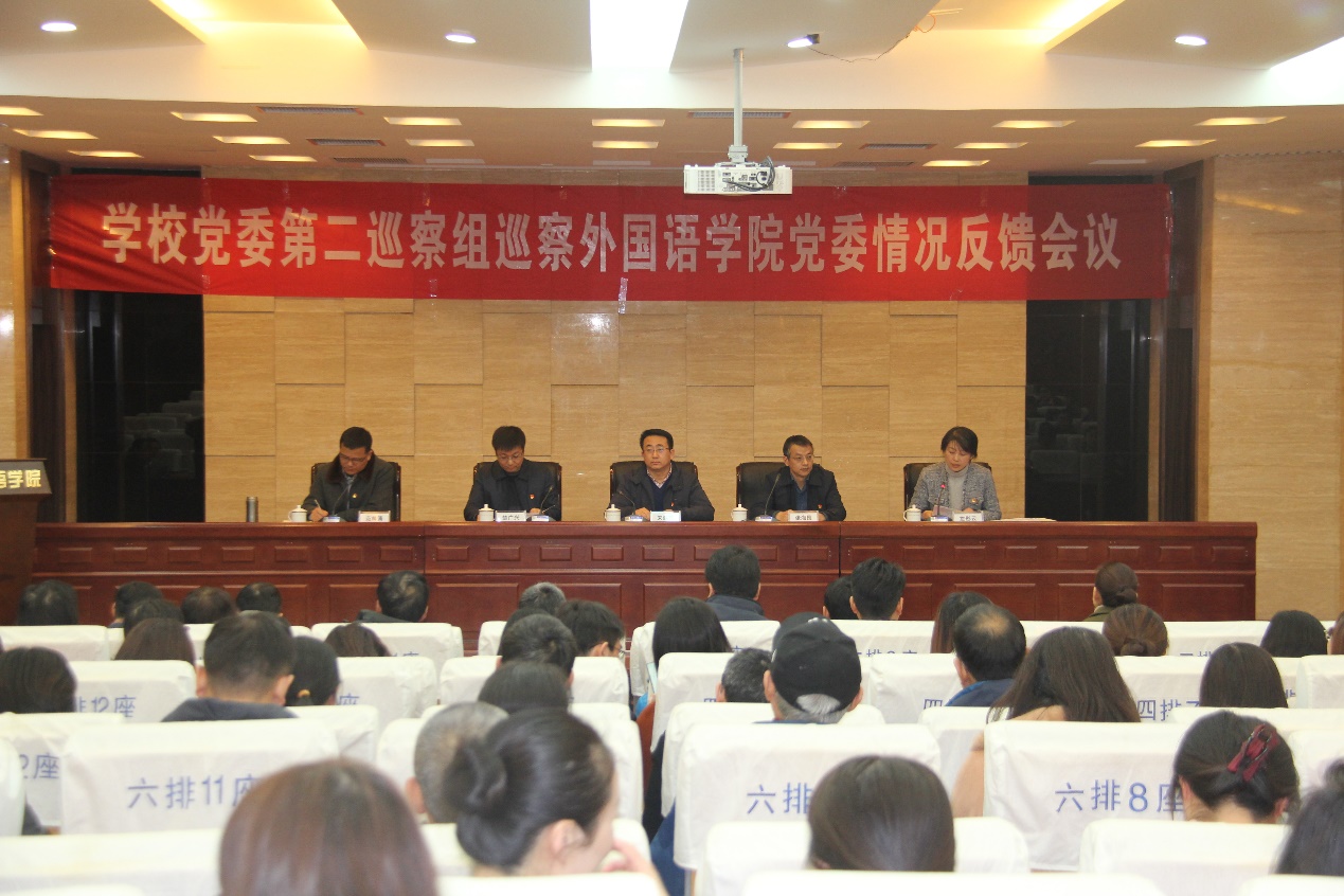 第二巡察组联络员王超,学院领导班子成员,学院全体教职工及学生代表参加会议。
