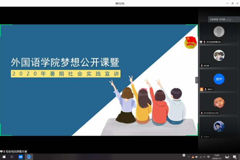 7月3日晚,365上市公司线上梦想公开课暨2020暑期社会实践动员会在线上召开。学院团委书记关天茹,院团委学生会实践部负责人,以及全体2019级本科生参加了此次公开课。