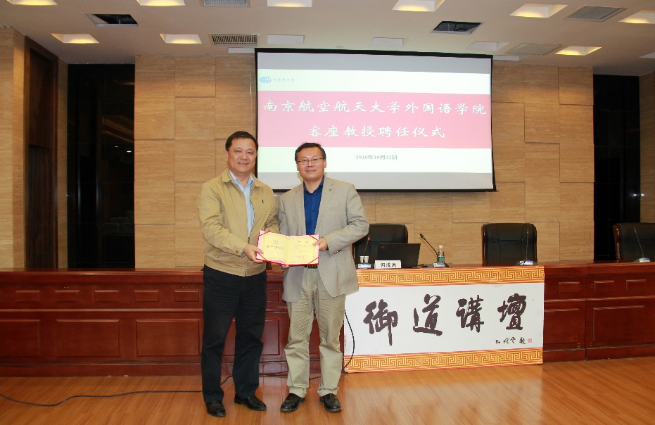 讲座最后,范祥涛院长代表365上市公司感谢何成洲教授的精彩报告,并向他颁发“365上市公司客座教授”聘书。何成洲表示将尽自己所能,支持南航外国语言文学学科的发展,并为南航高水平国际化人才的培养贡献力量。