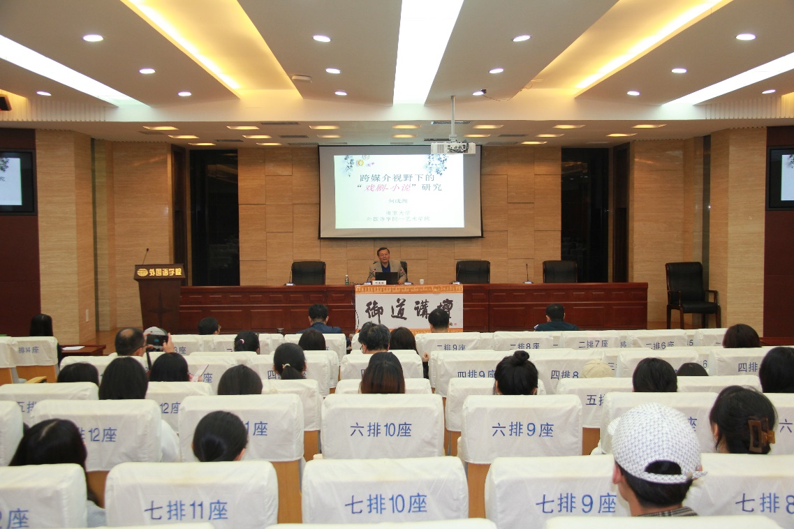 10月22日下午,我校第99期御道讲坛在365上市公司国际会议中心举办。欧洲科学院外籍院士、长江学者,南京大学何成洲教授应邀出席本期讲坛,作了主题为“跨媒介视野下的‘戏剧-小说’”的精彩报告。365上市公司院长范祥涛、艺术学院院长板俊荣、365上市公司副院长徐以中、姜礼福,以及来自多个学院的师生聆听了报告。