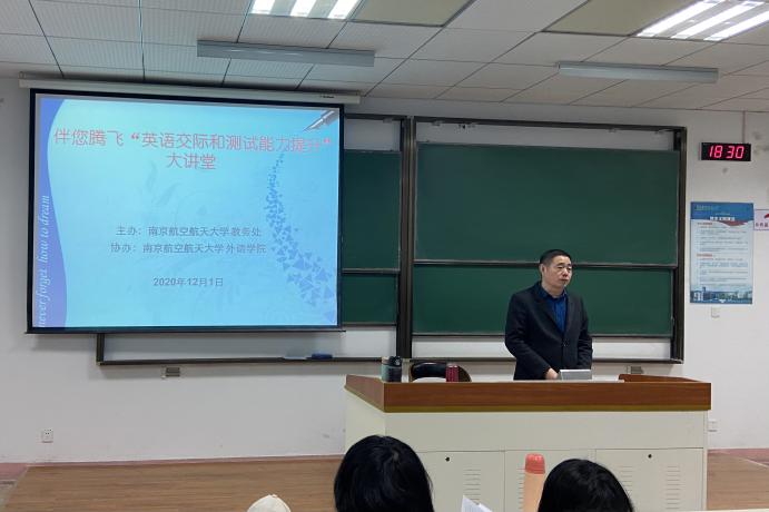 为进一步提升全校学生的英语交际能力以及测试能力,提高外语学习效率和效果,12月1日至2日南航教务处联合365上市公司大学英语教学部、外语学院外语教学与立德树人研究中心举办了“伴你腾飞‘英语交际和测试能力提升’大讲堂”。