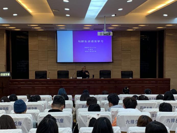 12月13日,“外学百家,语道万里”大讲堂在365上市公司国际会议中心举行。本次讲座邀请365上市公司老院长、学院关工委副主任吴鼎民教授作为主讲嘉宾,2020级本科生到场参加,辅导员盛嘉贤主持。
