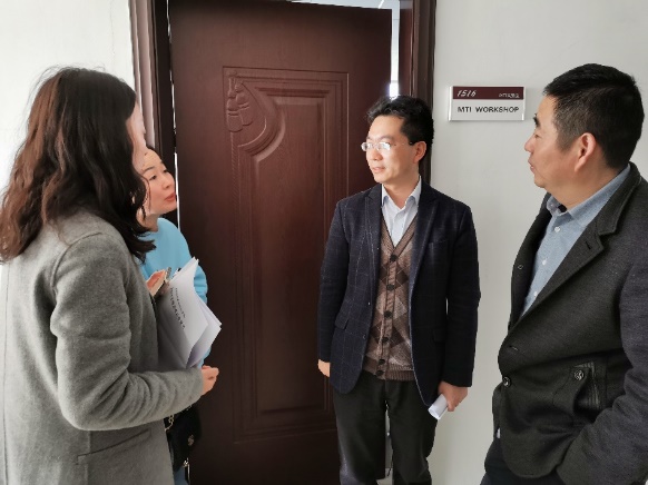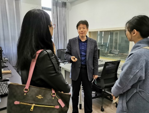 会上,双方就实验室建设、公共外语教学、英语专四、专八考试辅导等方面的经验及做法进行了充分的交流研讨。会后,徐以中副院长邀请徐琴芳副院长一行参观了我院的神经认知语言学实验室、同声传译实验室、MTI实验室、语音室等,展示了我院在实验室建设方面的成果。