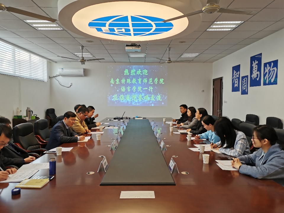 范祥涛院长对徐琴芳副院长一行表示热烈欢迎,并对我校基本情况以及学院专业建设、学科发展、师资队伍等相关成绩做了简要介绍。徐琴芳副院长介绍了南京特殊教育师范学院历史及语言学院办学规模、学科发展等概况。