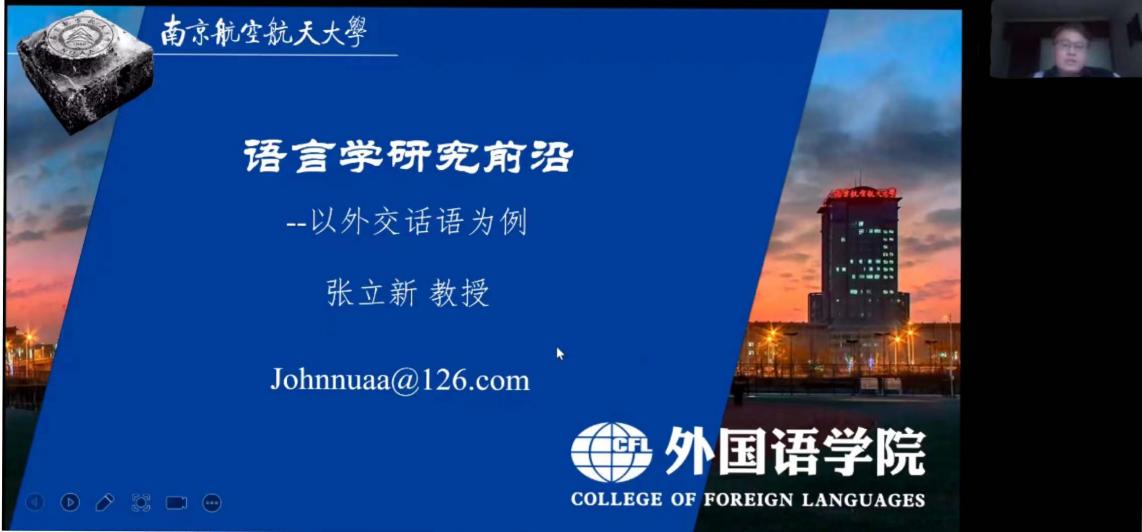 我院副院长姜礼福出席开营仪式,并介绍我院研究生招生政策与培养要求,通过一系列数据分析了我院雄厚的师资力量,及优秀毕业生的就业去向。随后,研外部副主任巫和雄副教授、英语系副主任信慧敏博士和英语系主任张立新教授为营员开展“航外·论坛:2021年外国语言文学前沿系列讲座”。三位教师分别以《文字的长征——<毛泽东选集>英译回溯》、《后疫情时代的外国文学研究》、《语言学研究前沿——以外交话语为例》为题,结合自己的研究兴趣和特长,向营员们分享了研究心得以及翻译、文学和语言学的研究前沿,并鼓励营员们勤思笃学。系列讲座增进了营员对我院教师研究实力、研究兴趣的了解,同时对如何开展学术研究有了更好把握。