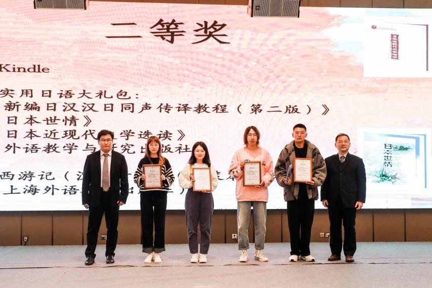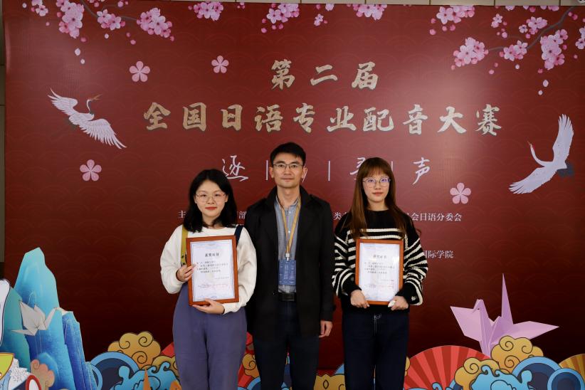 本次日语配音大赛在北京外国语大学合肥国际学院举办。初赛共收到来自全国180多所院校共1100多人参与的688组配音作品,最终入围决赛的作品仅51个,其中动漫组16个。在决赛中,动漫组设特等奖一组、一等奖一组、二等奖三组、三等奖五组、优秀奖若干组。10月20日拿到主办方公布的决赛视频素材后,金一宁和张晓行同学勇于挑战,在指导老师钟勇的建议下选择了《吹响!上低音号》这部情节完整、情感丰富,但难度极高的动漫片段作为参赛素材。之后,两位同学在钟勇老师的悉心指导下利用十分有限的赛前时间勤学苦练,反复跟读和模仿原视频。从语音语调到舞台表现力,不断突破极限,追求卓越。决赛当天,两位同学沉着应战,以纯正的语音语调、扎实的台词功底、细腻的情感表达和精妙的神同步深深折服了赛场评委和观众,最终斩获二等奖的好成绩。