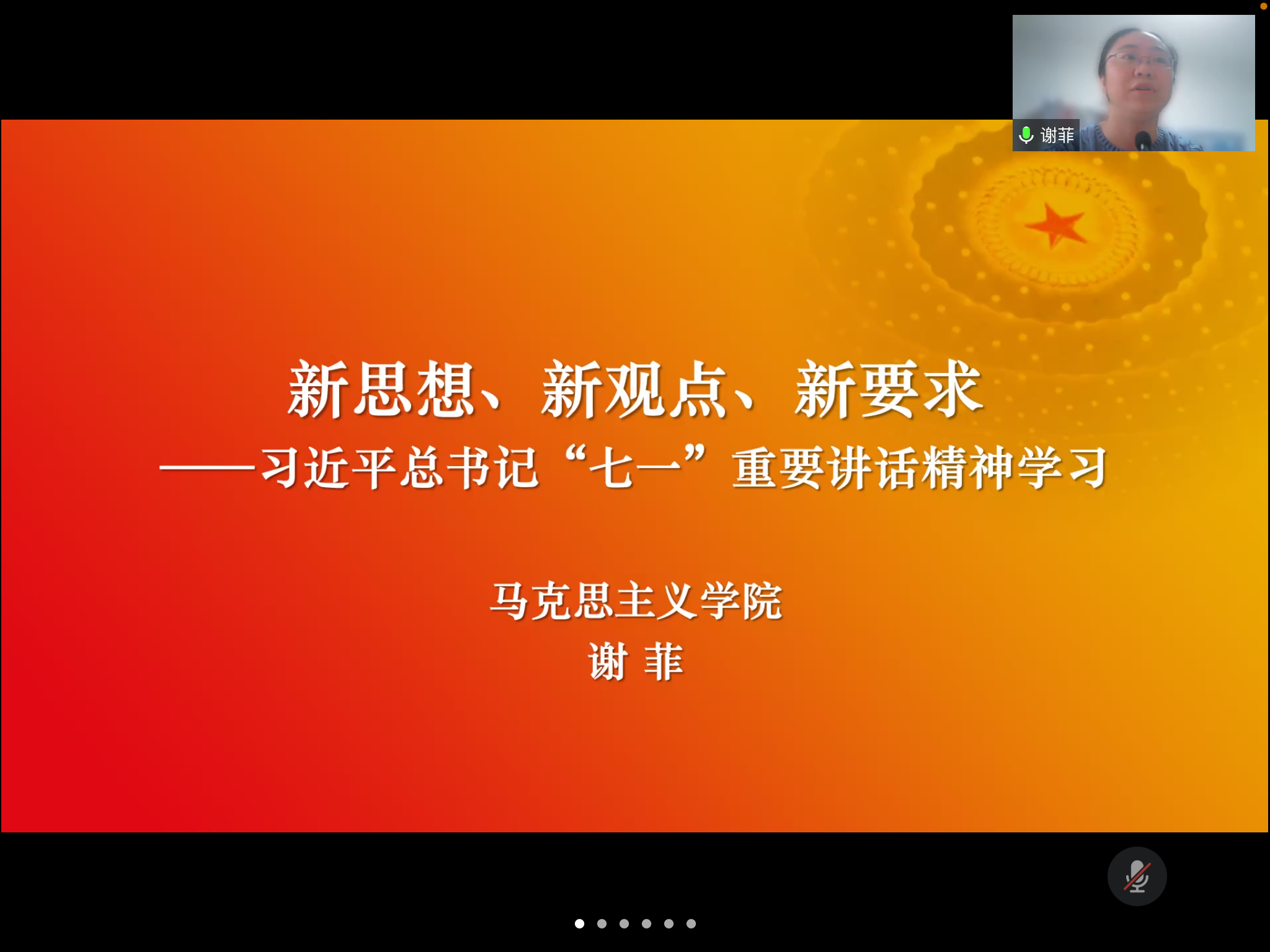 联系党的百年奋斗历程,谢菲作了题为《新思想、新观点、新要求——习近平总书记“七一”重要讲话精神学习》的专题讲座,全面解读了习近平总书记“七一”重要讲话的丰富内涵、精神实质和思想精髓,既有理论高度,又有实践深度,对学院师生和党员干部进一步准确领会总书记重要讲话精神,做好学院党建和改革发展等各项工作具有十分重要的促进作用。