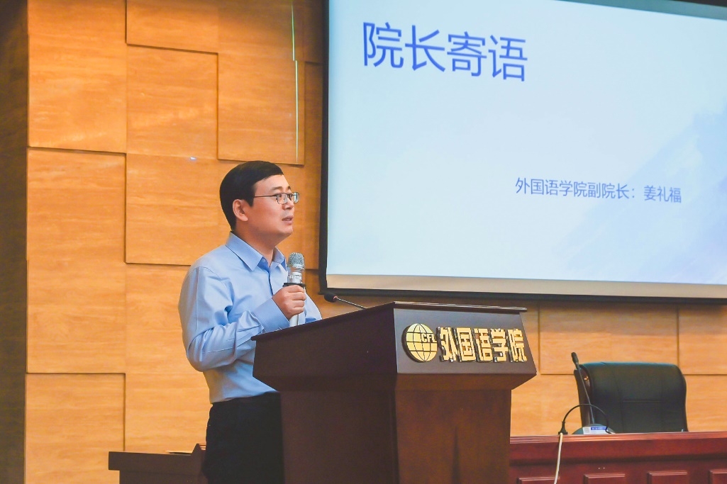 大会伊始,姜礼福发表致辞,代表学院对研究生新生的到来表示热烈欢迎。围绕“祝贺”、“感恩”、“期待”三个关键词发表讲话,希望每位新生都能怀揣梦想,不断突破,成就辉煌,并鼓励同学们利用好学科优势,加强各个学科间的交叉与融汇。