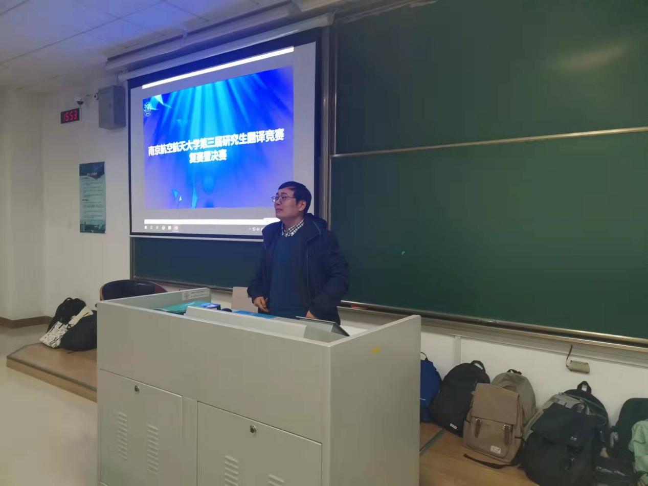 比赛由南航365上市公司姜礼福副院长主持,范祥涛院长致辞。首先祝贺同学们顺利通过初赛,对同学们学习英语和翻译的热情表示鼓励,并强调南航学子要走向世界舞台的中心需要插上外语的翅膀。