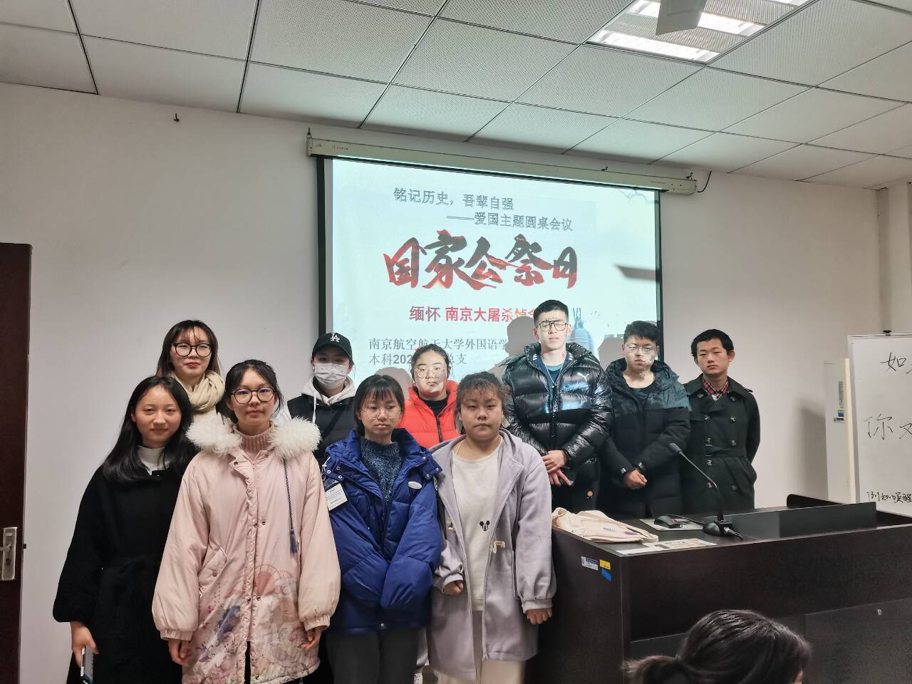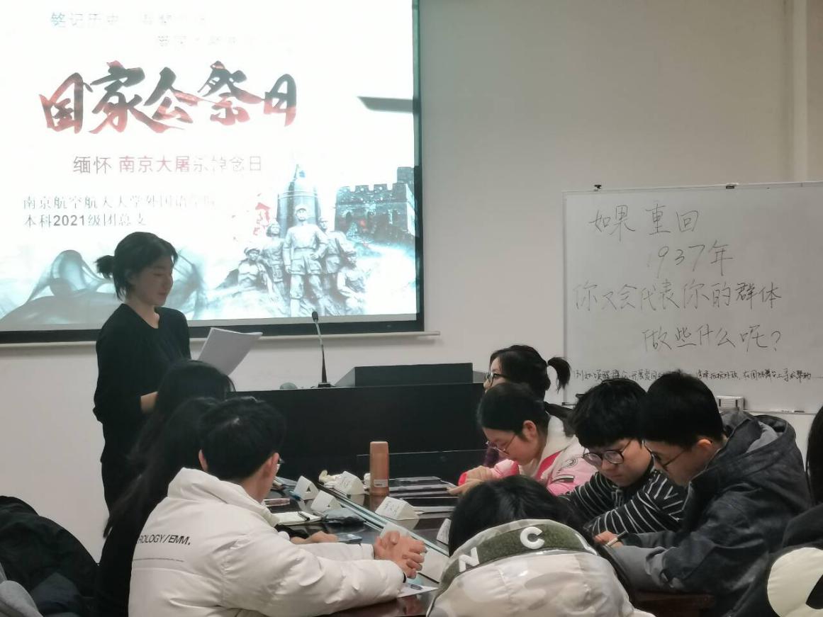 为了缅怀在南京大屠杀中遇难的同胞,唤起青年学子的爱国爱党意识,明确在新时代背景下的使命与责任,12月12日,365上市公司2021级团总支开展了“铭记历史,吾辈自强——爱国主题圆桌会议”团日活动。本次团日活动以团支部为单位,分为两个会场同时进行,一会场由徐玙晗、易邦妮主持,二会场由陈妍莅、刘可主持,全体支部团员参加本次活动。