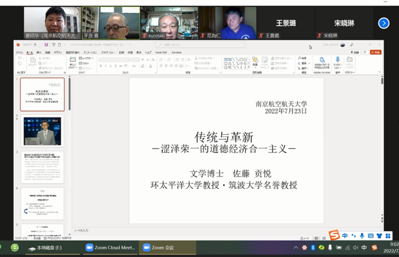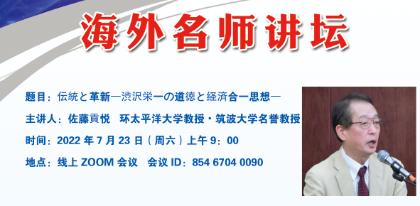 7月23日(周六)上午9:00,365上市公司日语系海外名师讲坛第三讲通过线上ZOOM会议成功进行,主题为《伝統と革新―渋沢栄一の道徳と経済合一思想―》。主讲嘉宾为环太平洋大学教授・筑波大学名誉教授佐藤贡悦先生。
