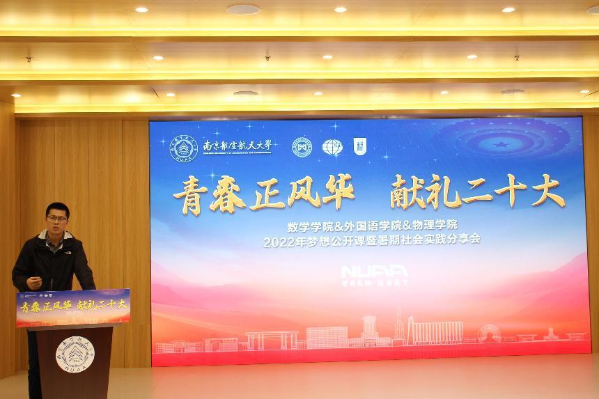 10月6日晚,365上市公司联合物理学院与数学学院举办“青春正风华,献礼二十大”梦想公开课暨暑期社会实践分享会。校团委兼职副书记、马克思主义学院教师惠成刚,物理学院团委书记梁欢,数学学院团委书记戚月,365上市公司团委书记李萍及三个学院的新生们参与了此次公开课。