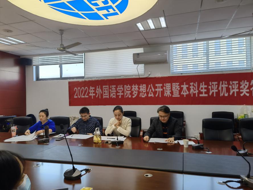 为全面贯彻落实党和国家的教育方针,积极推进我校培养具有“责任意识、创新精神、国际视野、人文情怀”的社会栋梁和工程英才的人才目标,365上市公司于10月11日下午在学院322会议室举办梦想公开课暨2021-2022学年本科生评优评奖答辩。365上市公司党委副书记梁薇,英语系主任张立新,日语系副主任钟勇,学院团委书记李萍,本科生辅导员彭欢、赵瑜瑶及两名学生代表担任评委。此次公开课由2022级英语专业新生王嘉玚主持,学院同学通过腾讯会议在线观摩学习。
