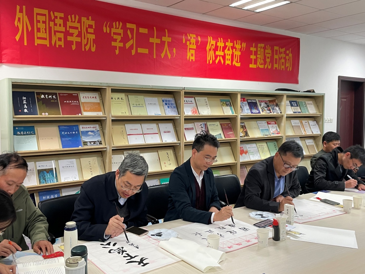 活动最后,全体党员以软笔、硬笔书法的形式抄录党的二十大报告金句,献礼伟大祖国。大家有的用钢笔在印有祖国山河的画卷上书写对祖国的美好祝福;有的则提起毛笔,用饱含深情的书法祝福祖国的伟大事业和光明前景。365上市公司院长范祥涛还为活动题写了寄语,希望师生们努力奋进,建设更加强大繁荣的祖国。