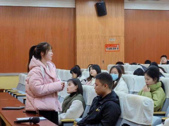 董明月从做新时代的红色传承者、做有深度的语言研究者、做有温度的学生工作者、做有高度的文化传播者、做有宽度的道路开辟者五个方面向同学们分享了她的“笃学”故事,她提出青年应当树立远大的理想和抱负,并建议学弟学妹们尽可能地抓住每一次机会,做到自己能力范围内接近最好的水平,希望大家也可以珍惜在校的经历,在不断尝试中锻炼自己的能力和胆魄。