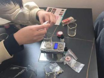 活动开始前,大家先通过教学视频提前预习唇膏、口红制作流程与注意事项。活动开始后,在小老师的指导下现场操作,杏仁油、白蜂蜡、口红粉、香精、维生素E……各种原料样样备齐,手套、烧杯、酒精棉片、电子秤、加热器……全部工具各就各位,消毒、称重、调配比、融化、浇模……同学们严格按照步骤,耐心地开始了制作。