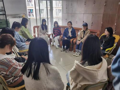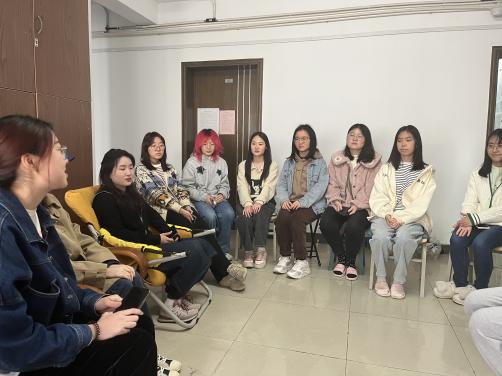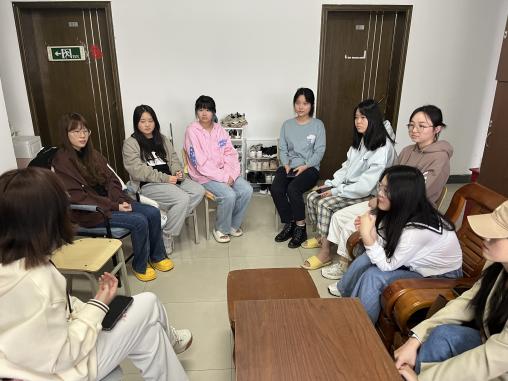 在保研专题分享会上,英语系大四学生张欣怡和徐笑云耐心细致地讲解了保研方面的相关经验和注意事项,包括对夏令营、预推免、推免三种形式的系统介绍,对申报材料准备的建议,对笔试面试准备细节的提醒等等。同学们围坐一圈依次提问,两位学姐逐个耐心解答。