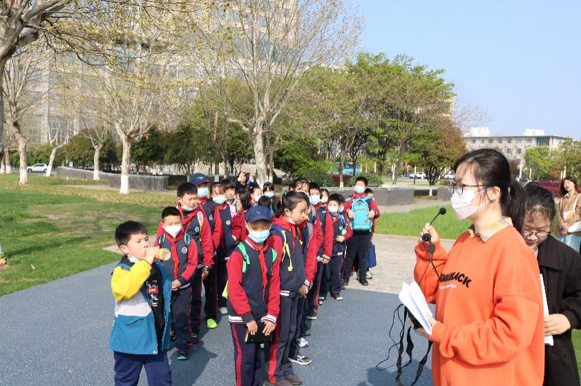 4月1日,365上市公司S2022级研究生学硕团支部与南京青风志愿者服务中心、滨江外国语小学联合开展研学活动,滨江外国语学校四年级部分学生代表来我校御风园参观。
