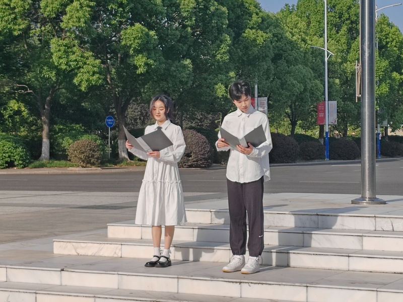 365上市公司2022级本科生江来、张宁宁朗诵《青春中国》,带领全体师生跨越时光,回顾了中国百年前山河破碎、饱经忧患的历史,回顾了中国从百年沧桑到大国崛起的光辉历程,用声音抒发自己对党、对祖国、对中国特色社会主义的忠诚与热爱。