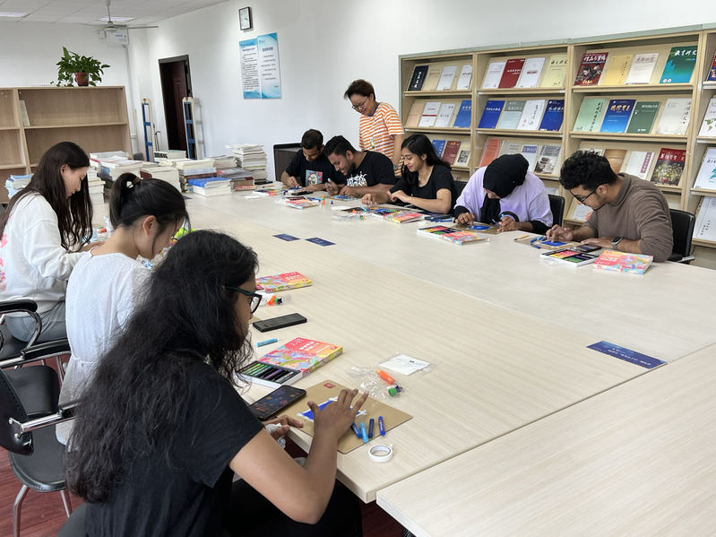 绘画的过程也是中外学子交流的过程,从一开始的些许拘束,到之后的随心畅谈,同学们互相分享自己在学校的美好经历,讲述自己在学习上的迷茫困惑,在绘画和中外文化交流中舒缓情绪,打开心扉。