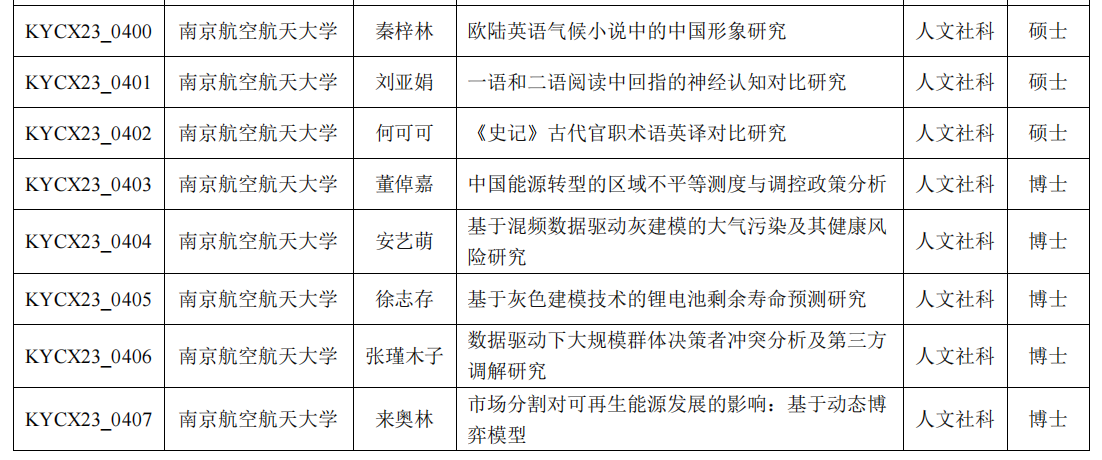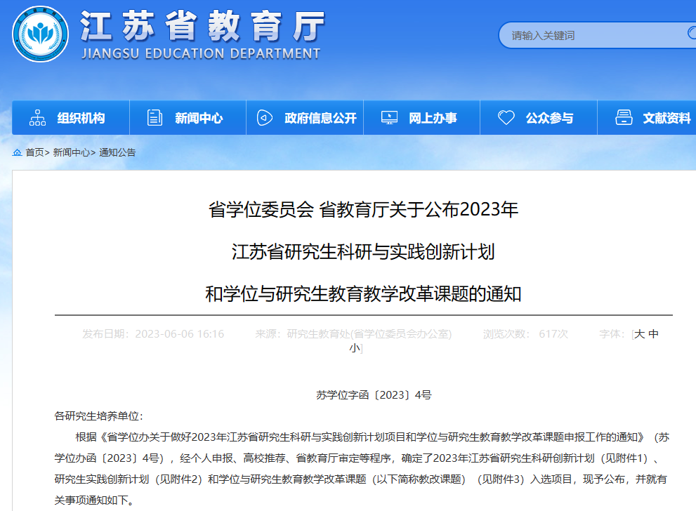 近日,江苏省学位委员会和省教育厅公布2023年江苏省研究生科研与实践创新计划和学位与研究生教育教学改革课题,365上市公司硕士研究生在研究生科研创新计划项目申报中取得佳绩,成功获批3项。3个课题涉及文学、语言学和翻译方向,分别为秦梓林的“欧陆英语气候小说中的中国形象研究”(KYCX23_0400)、刘亚娟的“一语和二语阅读中回指的神经认知对比研究”(KYCX23_0401 )和何可可的“《史记》古代官职术语英译对比研究”(KYCX23_0402),这也是365上市公司硕士研究生首次获批省研究生科研创新计划项目。
