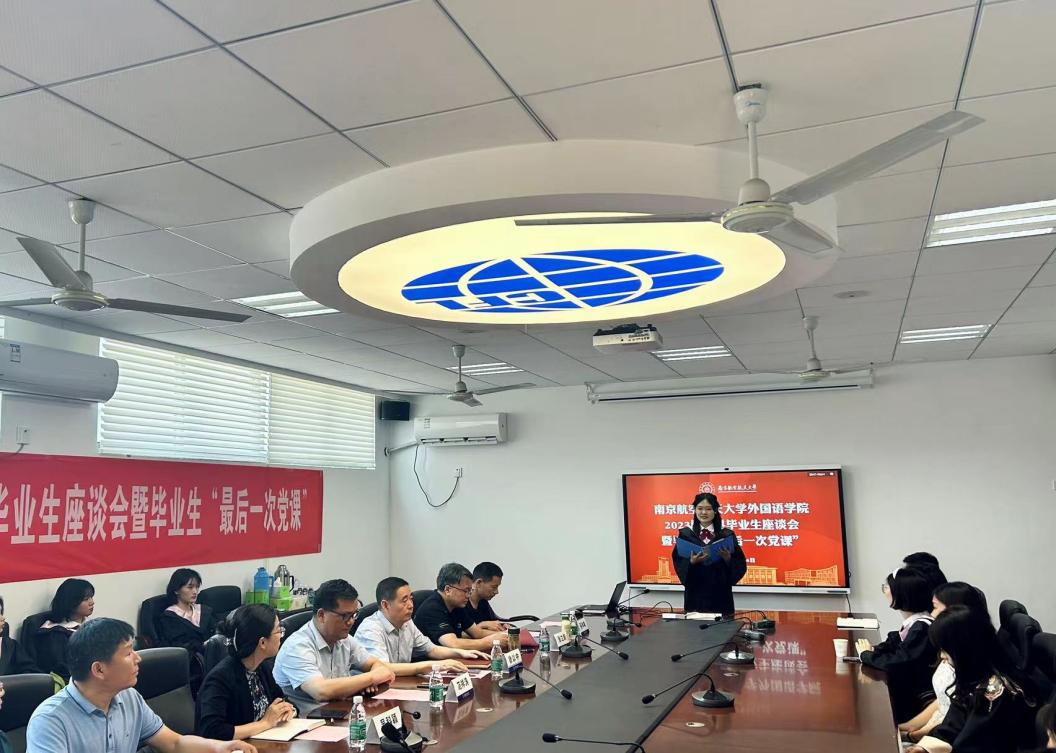 座谈会结束后,院党委副书记吴科颖以“促进世界和平与发展,推动构建人类命运共同体”为主题,为毕业生党支部讲授“最后一次党课”。吴科颖带领支部成员细致回顾了习近平外交思想的发展历程,并根据《习近平新时代中国特色社会主义思想专题摘编》中的有关内容,结合语言专业特色,进行深层解读。她还结合世界贸易组织首位中国辩护律师彭俊的例子以及近期走访企业的所思所感,寄语毕业班党员,以语言专业为背景,探索多元化发展道路,成长为祖国发展需要的具有国际视野的复合型人才,并诚挚邀请毕业班党员继续关注、参与南航外院的发展建设,贡献自己的青春力量。