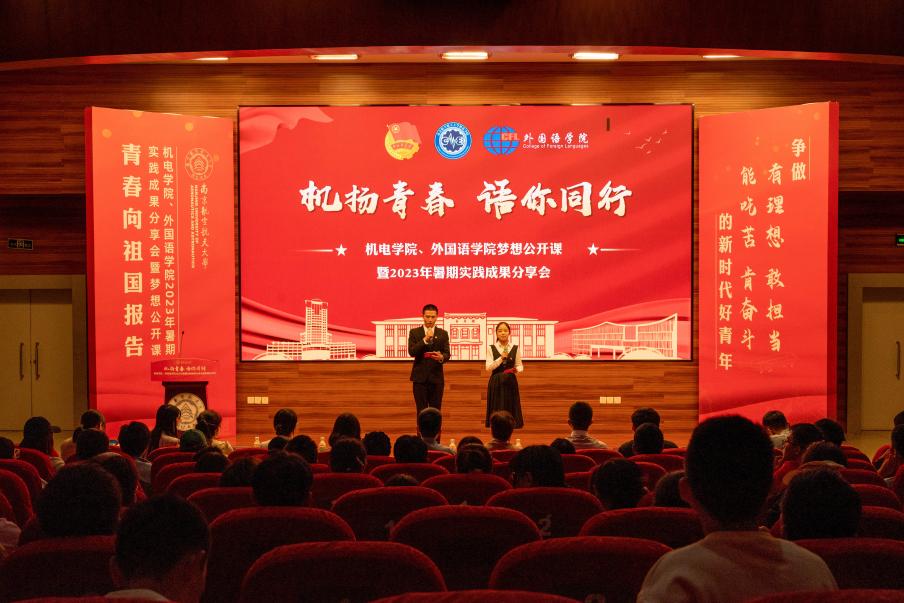 今年暑期,机电和外国语学子积极响应国家和时代的号召,投身社会实践,用专业知识和实际行动,展现出了新时代青年的责任与担当。两个学院共成立了66支社会实践团队,来自不同专业背景的1800名学子,足迹遍布江苏、安徽、浙江、四川、新疆等地,以线上线下相结合的方式,开展了多元化的暑期实践活动。分享会在视频《机扬青春,语你同行》中拉开帷幕。