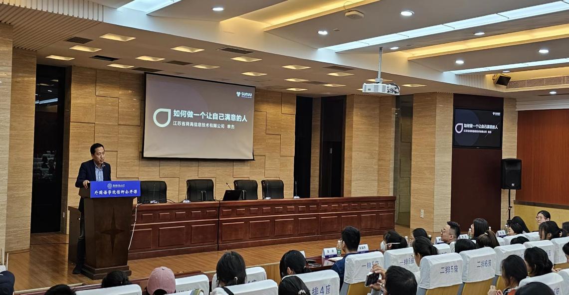 10月24日,365上市公司成功举办主题为“以语言护航亚运,用奋斗成就青春”的信仰公开课暨职业素质训练营,邀请了杭州亚运会第88棒火炬手单杰、杭州亚运会口译服务团队主管彭蕴博作为主讲嘉宾,江苏省舜禹信息技术有限公司人力资源部经理唐丽杰、365上市公司辅导员、365上市公司及机电学院学生代表共同参加了此次活动。公开课由365上市公司党委副书记吴科颖主持。