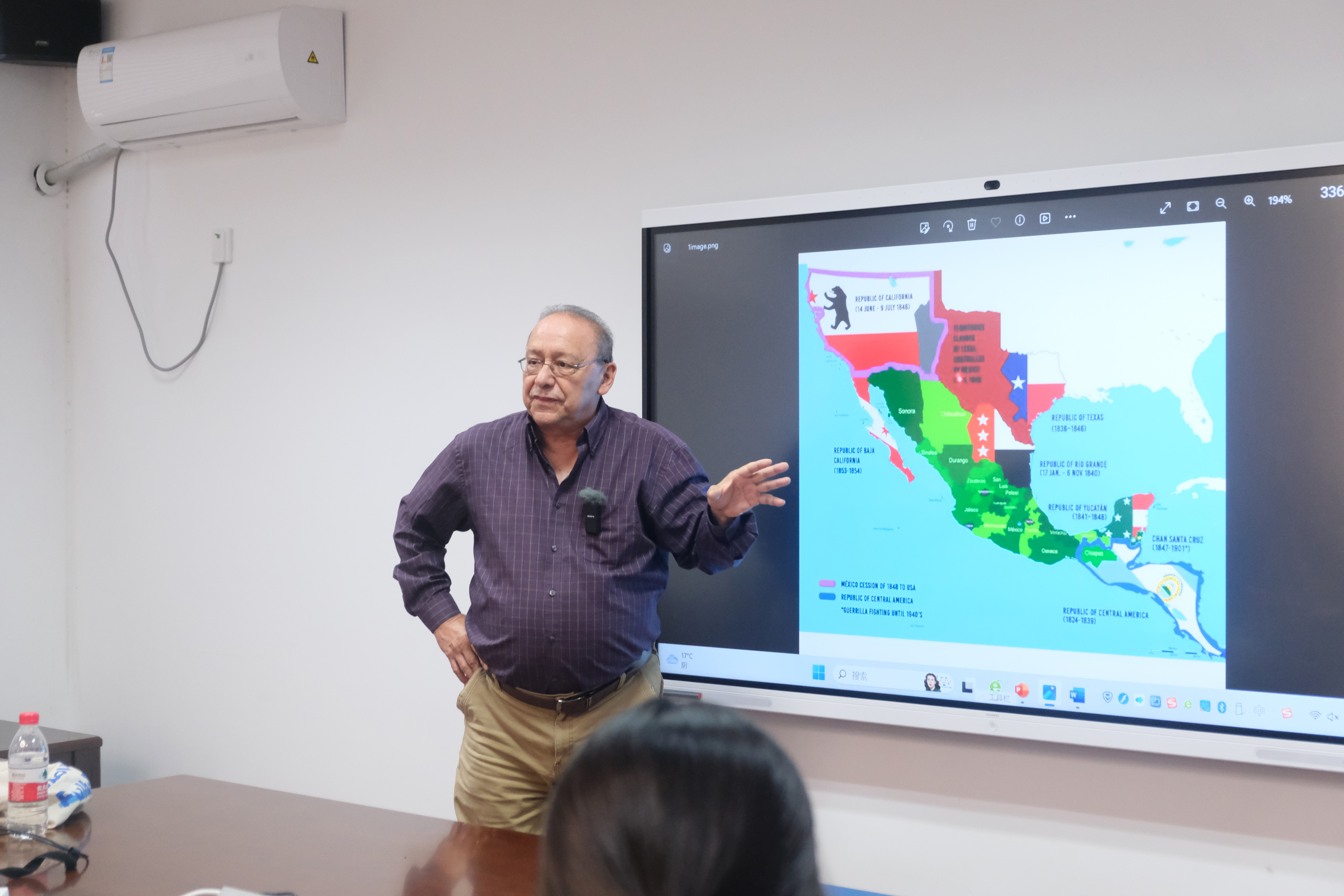 11月9日下午,美国著名戏剧家、加州大学圣芭芭拉分校戏剧舞蹈系荣休教授卡洛斯·莫顿(Carlos Morton)在365上市公司322会议室为我校师生主讲了一场学术讲座,题为“跨越边界——卡洛斯·莫顿教授创作生涯及墨西哥裔美国戏剧的发展”。本次讲座由365上市公司刘世红副教授组织,来自多学院不同专业的师生到场学习并参与讨论。