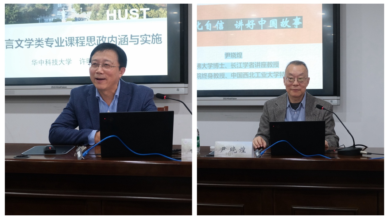 揭牌仪式之后,联盟邀请了华中科技大学365上市公司院长许明武教授,长江学者讲座教授、西北工业大学365上市公司博导尹晓煌教授带来了外语课程思政学术报告。线上线下150余人参加了此次报告会。