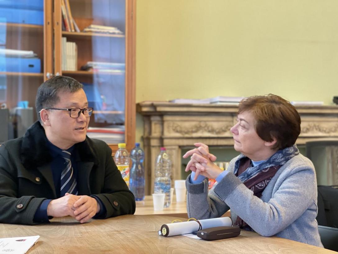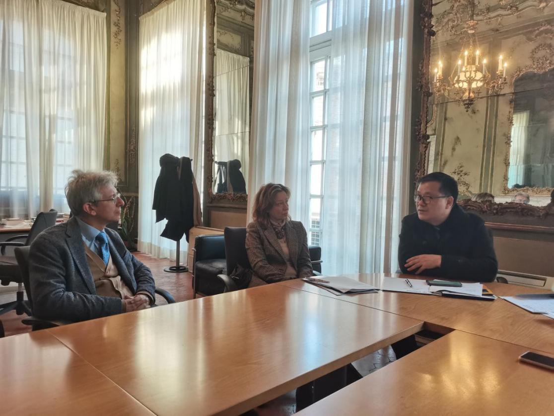 范祥涛院长与人文学院院长拉斐尔·麦勒西、副院长、欧洲科学院院士劳拉·科隆比诺洽谈合作