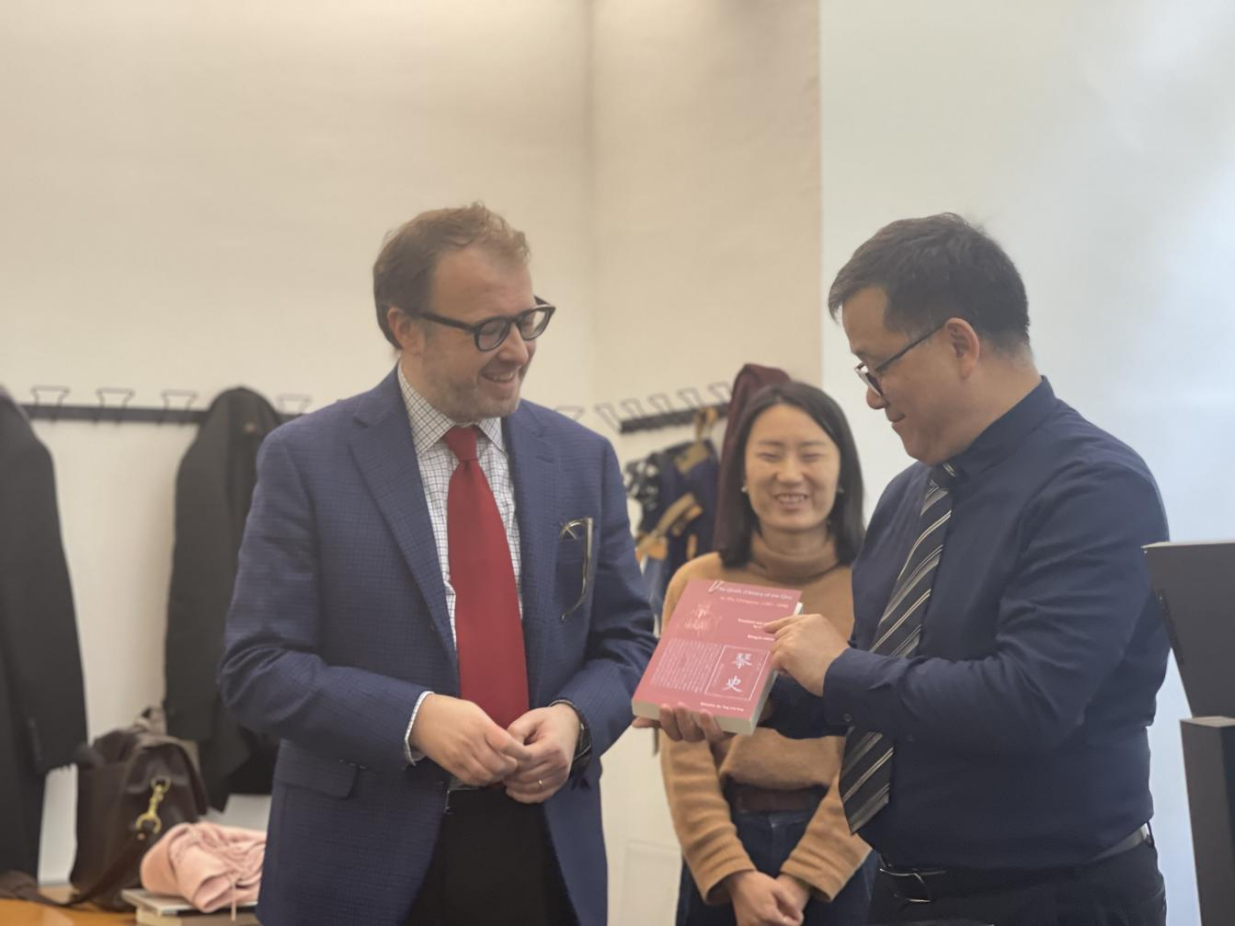 热那亚大学中文系教授吕卡·皮萨诺(Luca Pisanoj)向范祥涛院长赠送中文译著《琴史》