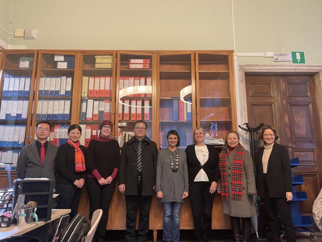 代表团与欧洲科学院院士、人文学院副院长劳拉·科隆比诺及教授们合影留念