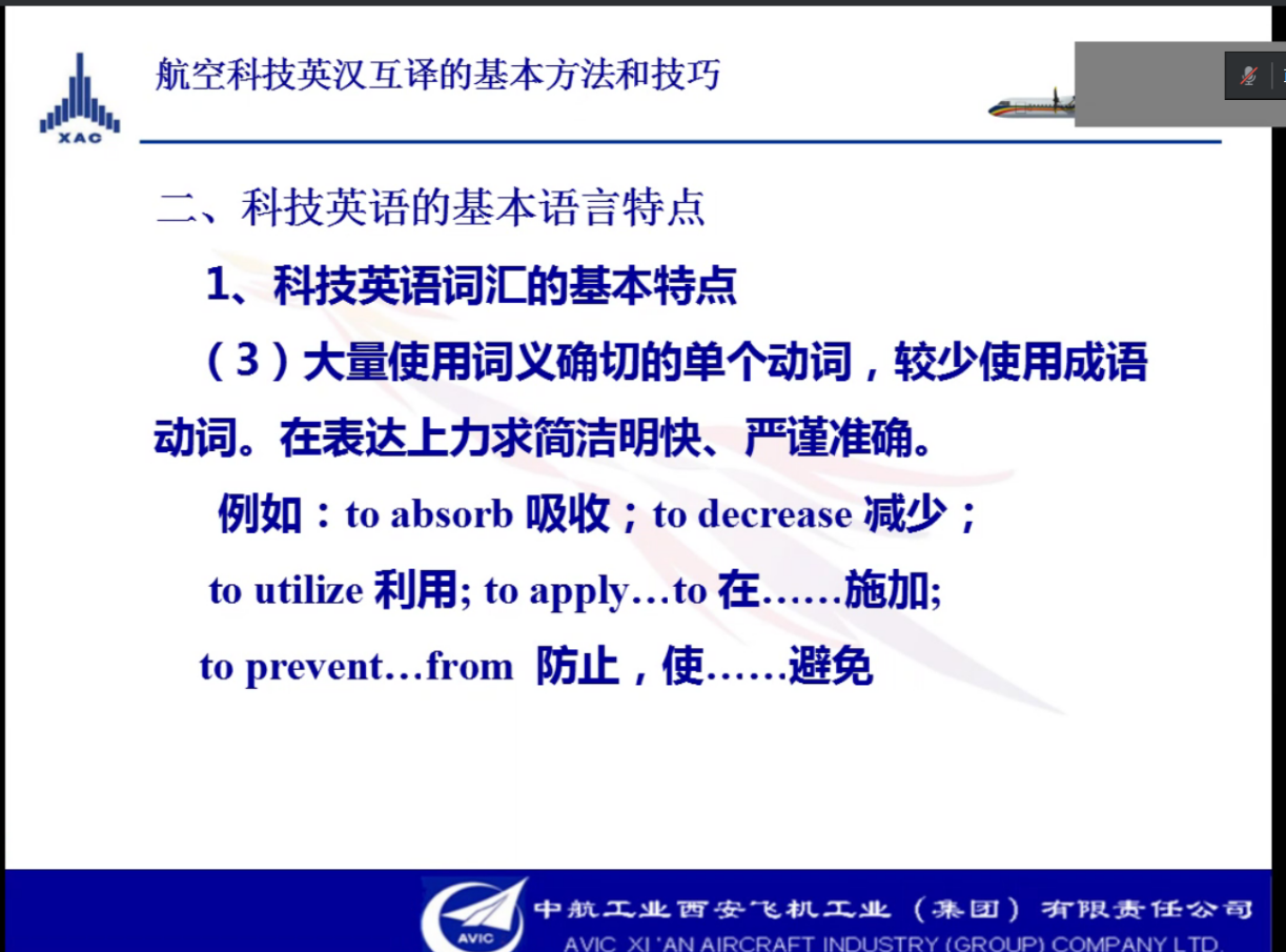 作为南航特色之一的航空英语是我校外语专业学生亟需学习的课程,而航空英语翻译对MTI的学生尤为重要。在长达两个小时的课程中,毛老师为同学们介绍了中外航空发展简史、科技英语的基本语言特点、科技英语翻译的基本方法、航空科技英语的特点以及航空科技汉译英的基本方法和技巧,还辅以图片和相关练习帮助同学们更好地理解课程内容。多年积累的实践经验加上深入浅出的授课方式让同学们对航空英语翻译的学习有了新的收获。课堂上,同学们全神贯注,仔细听讲,认真思考。在课程即将结束之时,同学们纷纷对毛老师的精彩讲解表示感谢。365上市公司王孝存等老师也全程参加了此次讲座。
