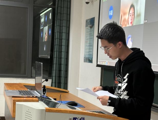 谭笑首先分享了自身的学习工作的经历。自2015年至2018年在南航取得硕士学位后,在2018年至2023年远赴美国亚利桑那州立大学读博,现于杜克大学担任讲师一职。在南航学习期间,谭笑参与了模拟联合国、外研社写作比赛和联合国实习项目,并自学第二外语、考取了上海中高级口译证书。谭笑强调参加该类活动对英语学习的重要帮助,结合自身经历表示模拟联合国活动对英语写作有重大提升作用,参加写作比赛通过集训等方式可以提高读说写的素养与能力。其次,谭笑分享了更多国际化的学习资源,鼓励同学们积极参加如外语写作教学与研究国际研讨会等学术会议。