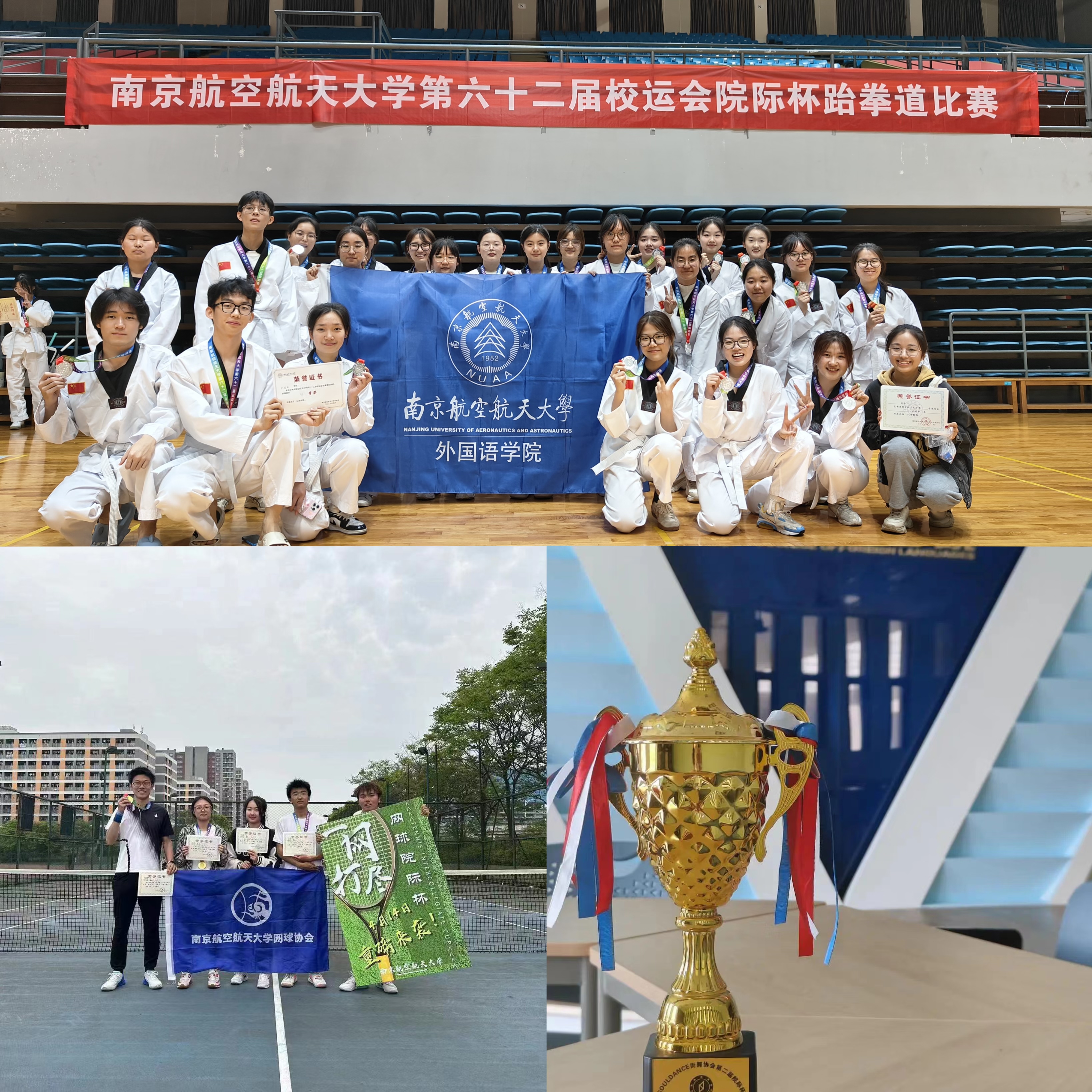 迎着四月春光,学院同学们也积极参与各项校级体育比赛,他们青春洋溢,挥洒汗水,斩获佳绩。先后取得院际杯网球比赛团体冠军、院际杯跆拳道团体第二、院际杯街舞大赛集体舞第二等优异成绩。