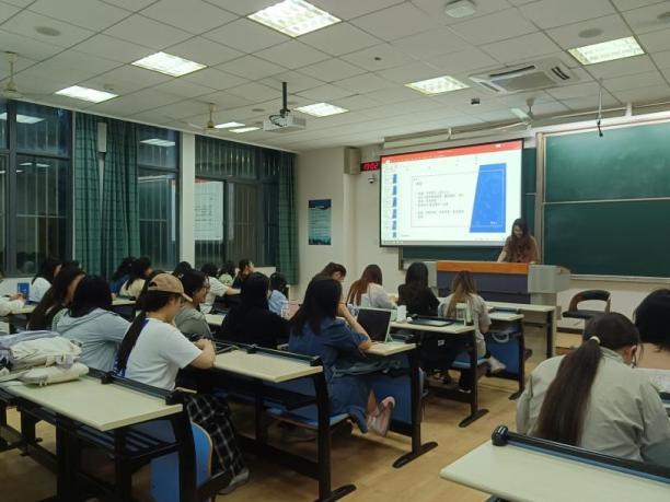活动伊始,大三年级中心组成员马晨馨介绍了两位同学被录取的院校情况。之后,考取华东师范大学英语笔译专业的王晨露分享了MTI备考经验。她详细介绍了考试科目、备考规划、各科重点及择校技巧等信息,并结合个人心得提供了具体建议,帮助同学们明晰了学习目标和学习方向。