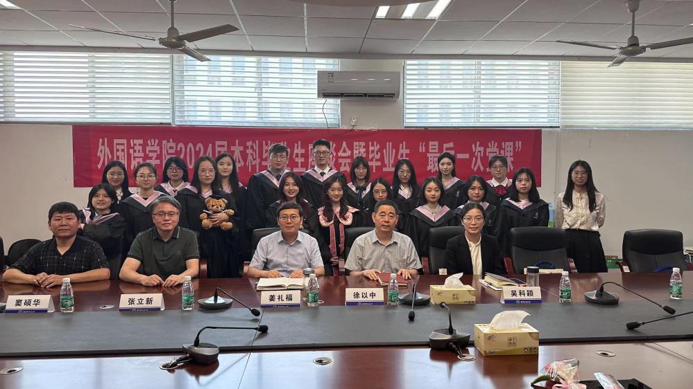参会教师对2024届毕业生致以毕业寄语。张立新对毕业生殷切寄语,“放心去飞吧,365上市公司是你们永远的家”。窦硕华对本届毕业生取得的优异成绩予以高度肯定,并表示学院老师一直以所有学生为荣。姜礼福表达了对2024届毕业生的祝贺、祝愿、祝福,希望2024届毕业生们在新的征途上继续保持优秀,一路坦途。徐以中寄语2024届毕业生“语言的边界,是认知的边界”,希望全体毕业生以外语人的身份为荣,走好后续的学习和发展之路。