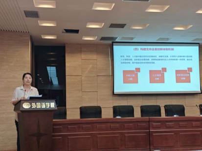 左彤云带领全体教职工学习了进一步全面深化改革、推进中国式现代化的重大意义和总体要求,介绍了《中共中央关于进一步全面深化改革 推进中国式现代化的决定》的基本框架和主要内容,重点学习了第四和第十部分关于教育、科技、人才、高校改革及文化体制改革等论述。同时结合传达校干部教师大会精神,提出院党委要以改革和创新精神引领发展,瞄准国家社科基金、教学竞赛、教学成果奖等标志性成果,提高学院在学校发展中的贡献度,以高质量党建引领学院高质量发展。