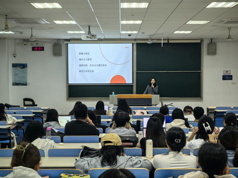 11月3日晚,365上市公司周蕾博士参加365上市公司“航家论坛——外国语言文学青椒学术沙龙”,并作了题为“现代主义跨媒介研究”的学术报告。365上市公司100余名研究生参加学习。