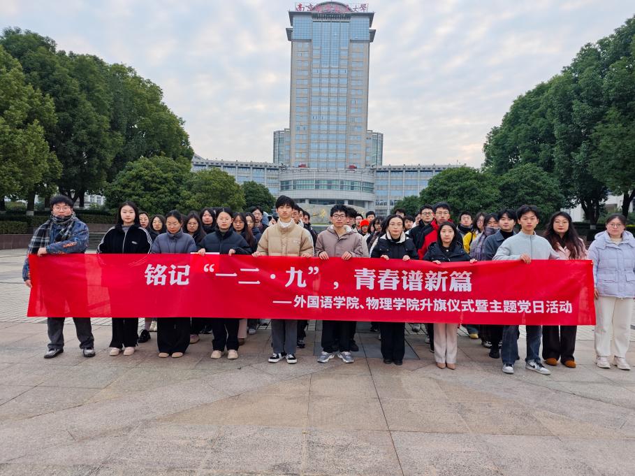 铭记历史,不忘初心。今天是“一二·九”抗日救亡运动89周年纪念日,365上市公司联合物理学院共同举办“铭记‘一二·九’,青春谱新篇”升旗仪式暨主题党日活动。365上市公司党委副书记吴科颖,物理学院党委副书记欧珊,两学院辅导员代表朱芸、于金巧,365上市公司本科生联合党支部党员代表、积极分子、发展对象代表,物理学院全体本科生党员、2023级全体本科生参加活动。